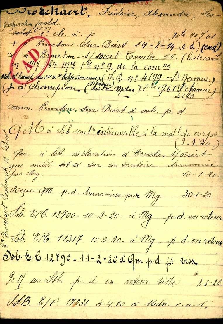 Broeckaert werd na de gevechten begraven te Ermeton graf nr. 55.