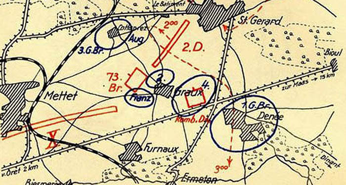Op 23 en 24 augustus hebben deze troepen zich terug getrokken richting Frankrijk en toen zijn er vele doden gevallen in de slag bij Ermeton-sur-Biert.
