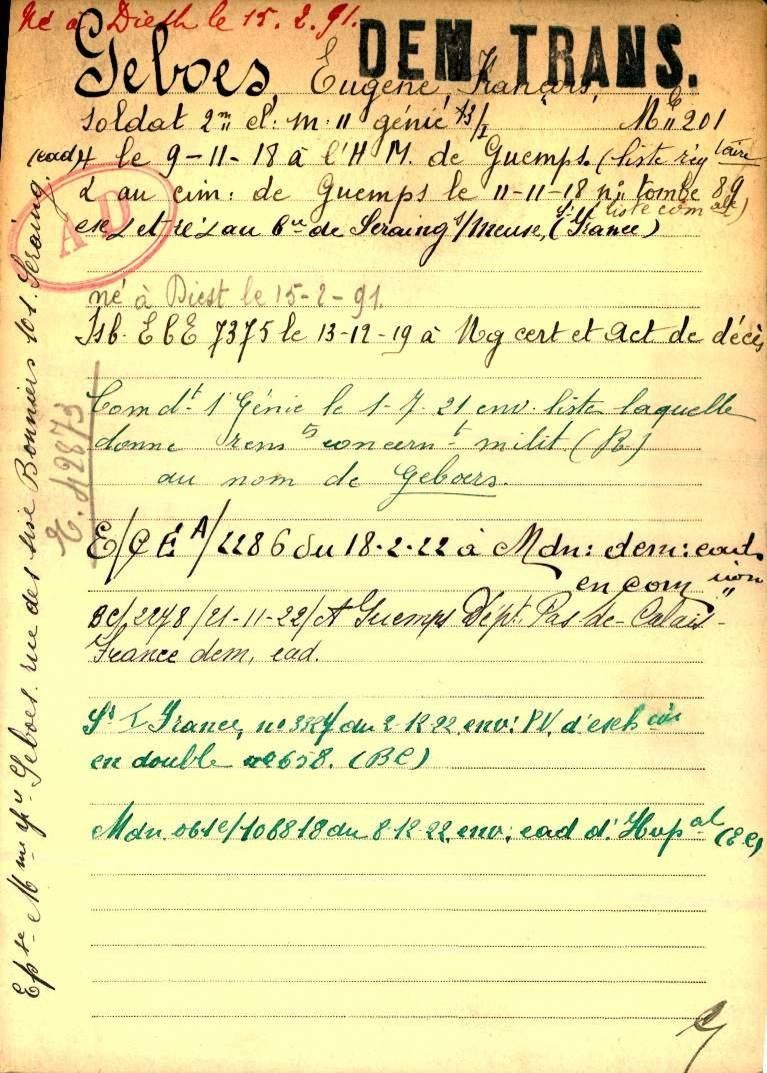 Geboes werd ziek afgevoerd van het front naar het Belgisch militair hospitaal van Guemps in Pas de Calais Frankrijk.