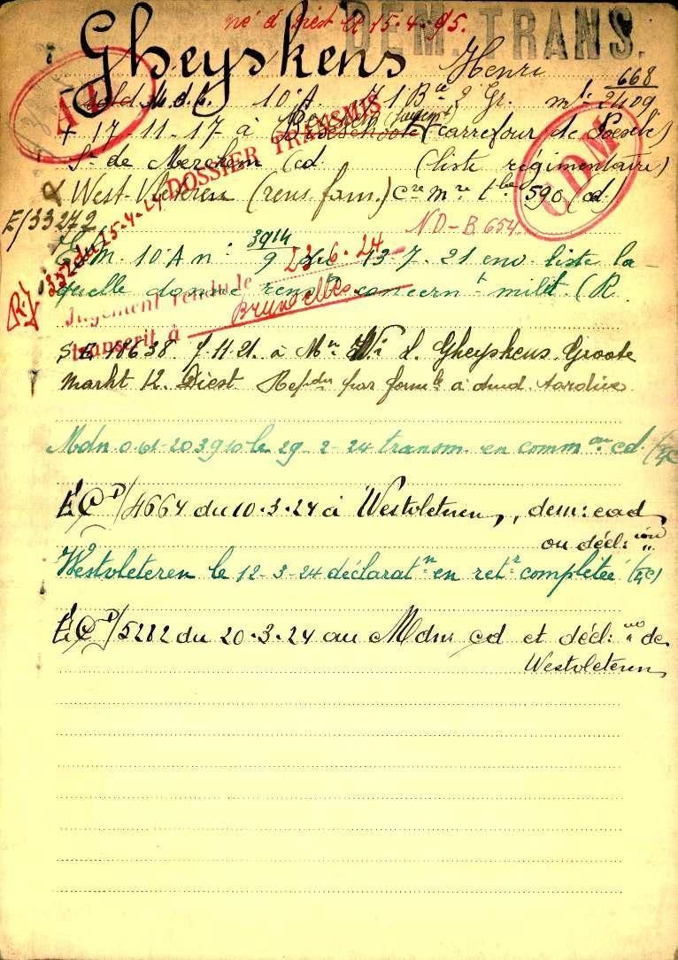 Uiteindelijk zou Henri Gheyskens hier overleden zijn tijdens gevechten met de vijand.