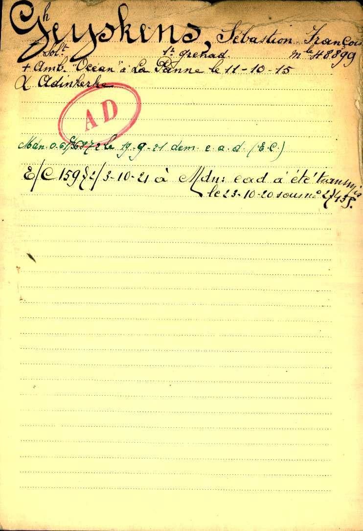 Plaats overlijden: De Panne, veldhospitaal l´Océan