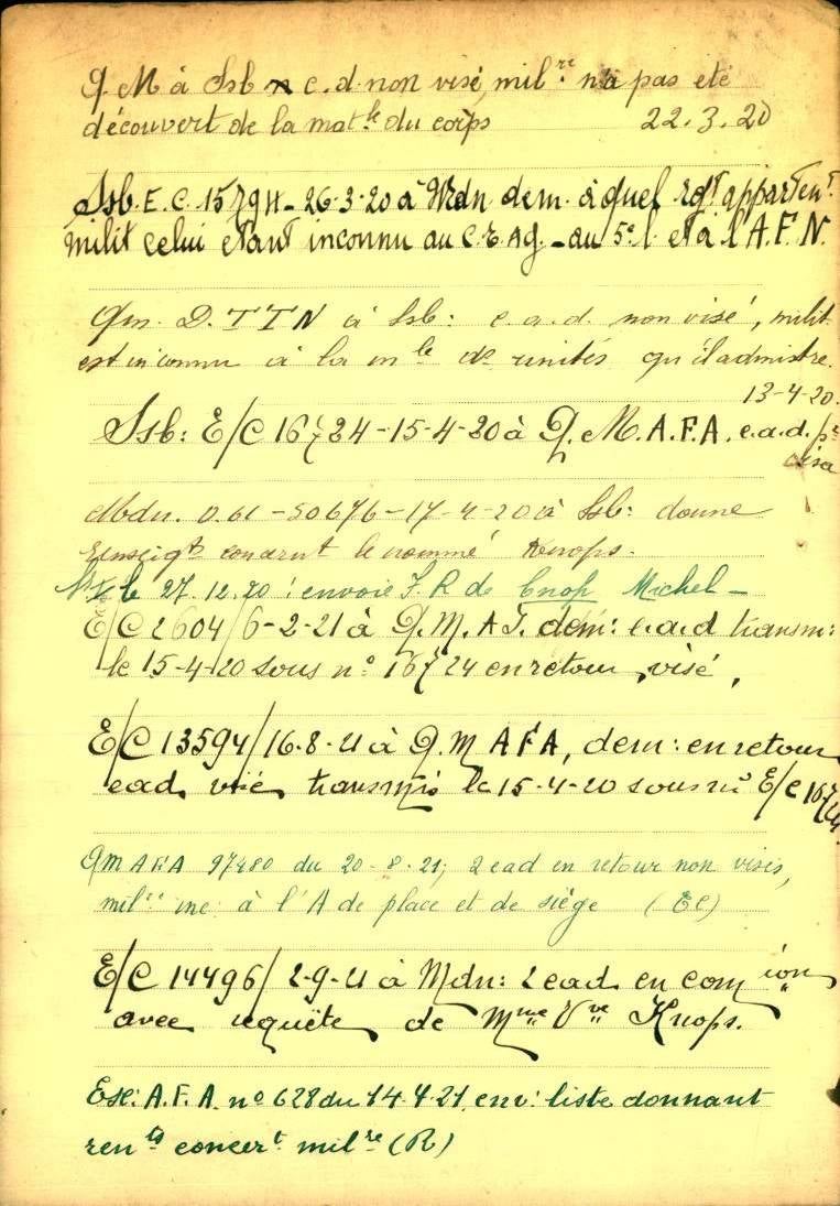 Knops is eigenlijk geen militair maar wel door het Belgisch leger opgeëist.
