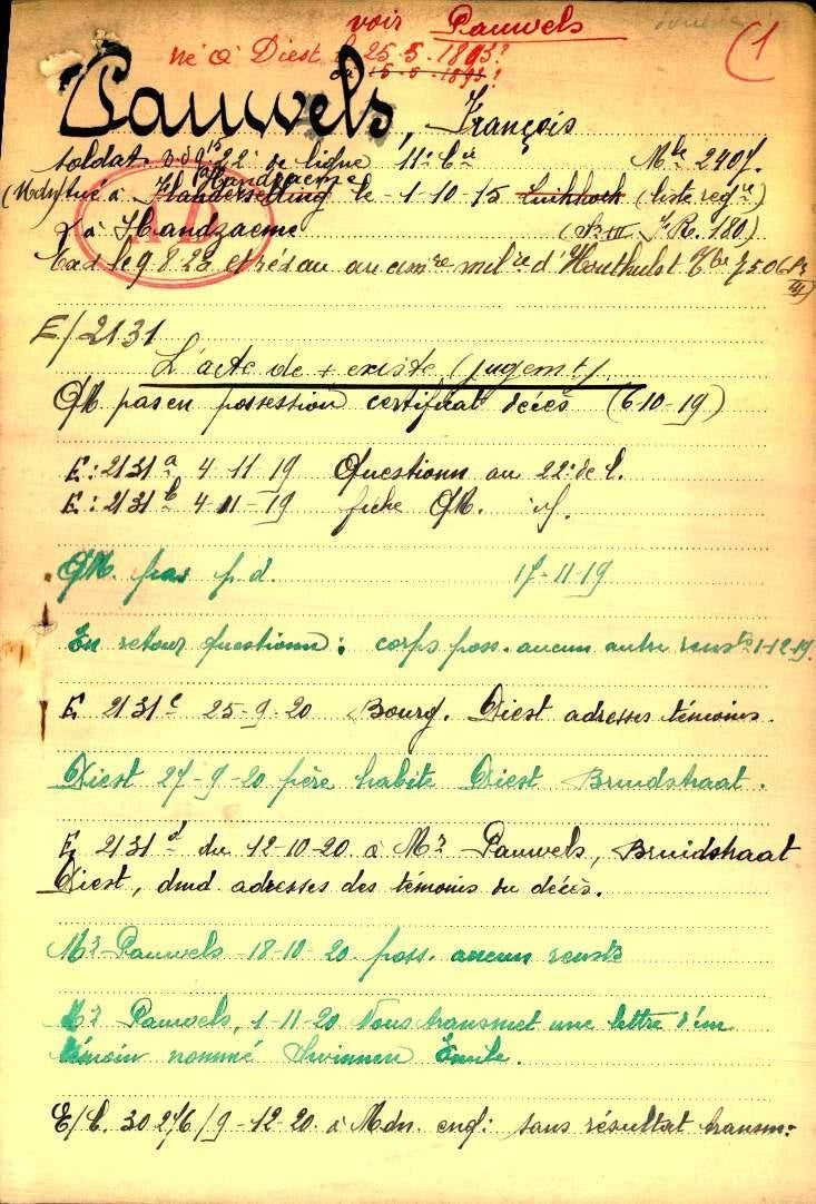 Het was tijdens deze gevechten dat Pauwels dodelijk gewond raakte in Zarren op 1 oktober 1918.
