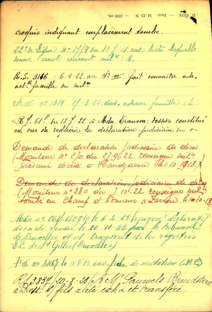 Op 9 augustus 1923 wordt hij opgegraven en herbegraven op het Belgisch militaire begraafplaats van Houthulst.