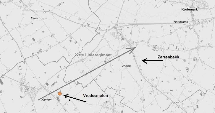 Na de verovering van de 43 m hoge molenheuvel van Klerken, daalde het 3de Linie het dal van de Zarrenbeek in en kon het oprukken tot vóór Zarren.