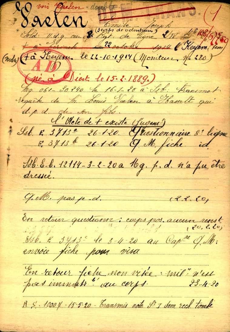 Graad: Soldaat Tweede Klasse Oorlogsvrijwilliger 1914