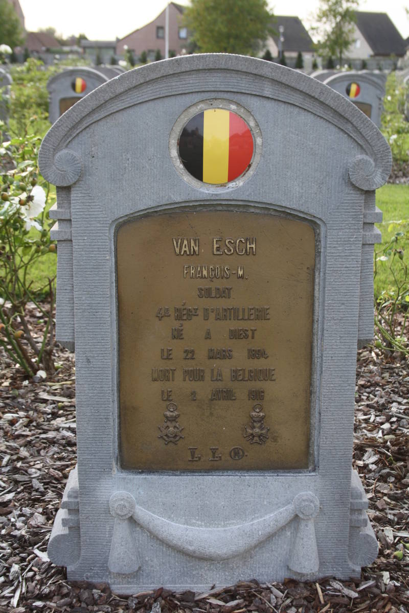 Het is op 2 april 1916 dat Van Esch zich waarschijnlijk in een van die bunkers bevond en dodelijk getroffen werd door een obus.