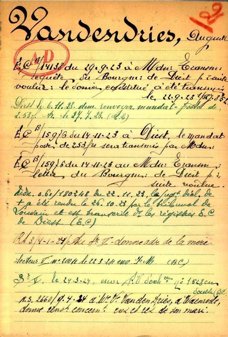 In een brief van 9 april 1924 wordt aan de weduwe Vandendries, wonende te Waanrode, medegedeeld waar haar man is overleden en begraven.