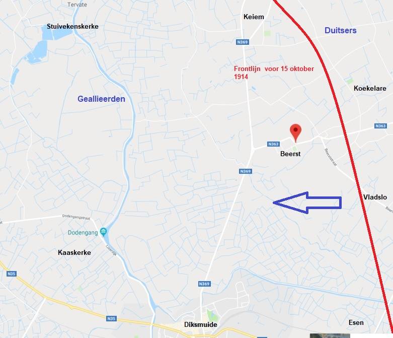 Dicht bij Beerst waar hij gesneuveld en begraven was ligt Keiem.
