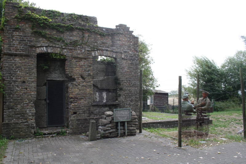 Op deze locatie in Ramskapelle werd het oude treinstation omgebouwd tot een verstrekte Observatiepost en Mitrailleurpost van het Belgische leger. Hier had men een uitstekend zicht op het inundatiegebied. De spoorweg is nu een fietsroute. Foto Rudy Kenis